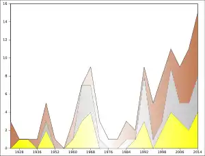 6. 1 2 Does not include a bronze medal by a mixed team that included French players.