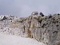Tuckett was also one of the first alpinists to explore the Dolomites in Italy; in 1865, together with Douglas William Freshfield, he traversed the Pale di San Martino group in eastern Trentino, crossing the San Martino Dolomites for the first time, a feat which astonished the mountaineering world as they had no maps and little equipment, relying on skill and intuition. In Trentino, the names of Tuckett, Freshfield, John Ball, and Edward Robson Whitwell are remembered as the pioneers who put the Dolomites on the map.[18] In 1871, in the Brenta Dolomites, Tuckett, with Freshfield and guide Devouassou climbed the Cima Brenta (3,150 m) via the Vedretta di Brenta Superiore on the west side; at the time this peak was thought to be the highest summit in the range.[19] The Rifugio Tuckett above Madonna di Campiglio,[20] situated at an altitude of 2,272 metres in the Brenta Dolomites, is named after him, as is the Bocca del Tuckett (2,648 m), a pass between two steep, rocky peaks that may be seen from the hut.[21]