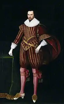 Francis Seymour, 1st Baron Seymour of Trowbridge, portrait c.1620 style of William Larkin. National Trust, Petworth House, which was rebuilt by his younger grandson Charles Seymour, 6th Duke of Somerset (1662–1748)