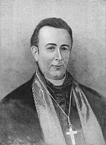 On July 23, 1850, Gartland was appointed the first bishop of the newly erected Diocese of Savannah by Pope Pius IX.[3] He received his episcopal consecration on November 10, 1850, from Archbishop Samuel Eccleston, with Bishops Francis Kenrick and Michael O'Connor serving as co-consecrators, in Philadelphia.[3] The new diocese (comprising the entire state of Georgia and eastern Florida) contained 15 churches, eight priests, and around 5,000 Catholics.[4][6]
