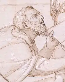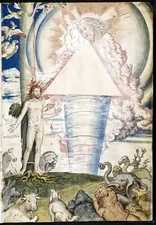 He represented the intelligible reality of the Holy Trinity through a "hypothetical" syntax of geometrical figures.[6] He insisted on the contrast between the ideal plane, the incorporeal form and the "imperfect copy in the terrestrial zone". His visual language demonstrated a mixture of Neoplatonism, Christian Kabbalah and finally Lullism.[7] In education, Francisco de Holanda emphasized mathematics and geometry, subsequently anticipating Clavius's reforms of the late 16th century.[8] Sylvie Deswarte said that "Francisco de Holanda gives a privileged place to cosmography and astrology in the education of the painter. On par with geometry, mathematics and perspective, he recommended them… in order to reach the heavens in the hope of one day arriving to the Empyrean and realising celestial works."[9]