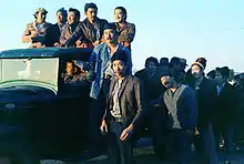 A snapshot from director John Korty's "Farewell to Manzanar." Chin is in the foreground, with Lawson Inada directly behind.