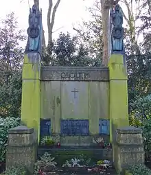 He died unexpectedly in his factory villa on September 7, 1910, and was buried in Melaten Cemetery (Millionenallee). The Clouth family grave was designed by Rudolf Bosselt in 1904.[3] His wife Josefine Clouth took over the management of the company in 1910, the year of his death. Today, the entrepreneur is commemorated by Franz-Clouth-Strasse in Cologne-Nippes, which was named after him in 1915. The company Clouth Gummiwerke was merged with its parent company Continental AG in January 1997 due to losses, which ended the worldwide known company.