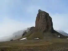 As part of the opening up of Franz Josef Land, the Institute of Geography in Moscow, Stockholm University and Umeå University (Sweden) conducted expeditions to Alexandra Land in August 1990 and August 1991, studying climate- and glacial history by radiocarbon dating raised beaches and antlers from extinct caribou.[42][43][44] The work was conducted from a small research base southwest of Nagurskoye, built in 1989. Also in 1990, a collaboration between the Academy of Sciences, the Norwegian Polar Institute and the Polish Academy of Sciences resulted in the first of several archaeological expeditions organized by the Institute of Culture in Moscow.[41] The military base on Graham Bell Island was abandoned in the early 1990s. The military presence at Nagurskoye was reduced to that of a border post, and the number of people stationed at Krenkel Observatory was reduced from 70 to 12.[45] The archipelago and the surrounding waters were declared a nature reserve in April 1994. The opening of the archipelago also saw the introduction of tourism, most of which takes place on Russian-operated icebreakers.[46] In 2011, in a move to better accommodate tourism in the archipelago, the Russian Arctic National Park was expanded to include Franz Josef Land.[47] However, in August 2019, Russia abruptly withdrew its approval for a Norwegian cruise ship to visit the islands.[48]