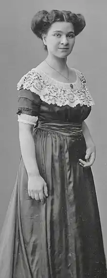 Franziska Spangenthal was born in Frankfurt am Main as the eldest of three daughters of the Jewish merchant Robert Spangenthal and his wife Henriette Klein.[1] Her father was a wholesaler of chemical products and machine oils.[2] Shortly after the death of her father in 1905, she met painter, puppet-maker and caricaturist Albert Schlopsnies. The son of a Protestant landowner from East Prussia, he studied at the Munich Art Academy with Gabriel von Hackl from 1903.[3] On 15 September 1910 in Frankfurt Franziska married Albert, who was by then employed as a freelancer at Margarete Steiff GmbH,[4] for which he designed catalogs and numerous dolls and stuffed animals. In 1913, Franziska and Albert moved to Munich and settled in the Schwabing district. In May 1915 their daughter Irmgard Erika was born.[1]