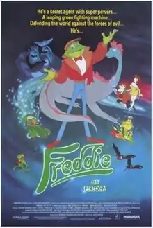 Freddie as F.R.O.7 (also known as Freddie the Frog) is a 1992 British animated musical action fantasy comedy film written and directed by Jon Acevski and starring the voice of Ben Kingsley.[1] Inspired by bedtime stories Acevski told to his son about his favourite toy frog working as a secret agent, it is a parody of James Bond.