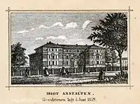 Helbredelsesanstalten for idiotiske Børn, also referred to as Idiotanstalten, was founded in 1855 and originally based in the nadkacent property Bakkehuset. Its new building was built 18591860 to design by Ferdinand Meldahl.[1][2]