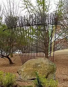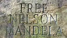 Free Nelson Mandela is a sculpture in Atlanta, Georgia, USA, created by David Hammons in 1987. Alternatively referred to as a monument, the piece was originally created as a statement demanding the liberation of the imprisoned South African activist, Nelson Mandela. The official title is Nelson Mandela Must Be Free to Lead His People and South Africa to Peace and Prosperity.[1] However, it is most frequently called just Free Nelson Mandela, because those words are carved in the face of the granite rock that is the bottom portion of the sculpture.