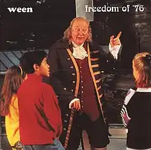 Freedom of '76 is an EP by Ween released in 1994 by Flying Nun Records.[2] The title song was originally featured on Ween's album Chocolate and Cheese. A music video for the track was directed by Spike Jonze. It depicts Ween (Gene and Dean) attempting to steal the Liberty Bell only to be caught, arrested, and sentenced by the authorities.[3][4] A real event occurred at Independence Hall, where the video crew filmed the night before. A prop hand grenade was left from the shoot only to be discovered by a young tourist the next day.[5] The music video was filmed circa March 1995.[6]