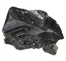 Freibergite is a complex sulfosalt mineral of silver, copper, iron, antimony and arsenic with formula (Ag,Cu,Fe)12(Sb,As)4S13. It has cubic crystals and is formed in hydrothermal deposits. It forms one solid solution series with tetrahedrite and another with argentotennantite. Freibergite is an opaque, metallic steel grey to black and leaves a reddish-black streak. It has a Mohs hardness of 3.5 to 4.0 and a specific gravity of 4.85 to 5. It is typically massive to granular in habit with no cleavage and an irregular fracture.