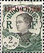 One additional way that the Indochinese offices differed from the other French Post Offices in China was that their issues were all overprints applied to the then-current stamps of French Indochina, rather than to the stamps of France. The Paris-run offices would not accept mail franked with unoverprinted stamps of French Indochina, but the Indochinese run-offices are known to have done so. For this reason, French Indochina stamps are sometimes found legitimately used with cancels from one of their Chinese offices. Stamps from the Indochinese offices in China can likewise be found with cancels from Indochina proper, although these were likely applied at Hanoi or other locations through which mail had to pass, (i.e. these are essentially paquebot cancels.) - From 1923, remainder stocks of the Indochinese office issues were used up in Indochina and Kouang Tchéou Wan, see below.