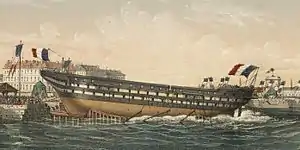 Ville de Nantes was a second-rank, 90-gun, steam-powered ship of the line built for the French Navy in the 1850s, lead ship of her class of three ships. The ship was in reserve most of her career and served as a prison ship for Communard prisoners in 1871–1872 after the Paris Commune was crushed by the French government. She was sold for scrap in 1887.