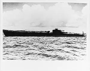 Moored at Berth 9 at the Darse Nord du Mourillon with her diesel engines disassembled,[2] Henri Poincaré was not yet able get underway when Germany and Italy occupied the Free Zone (French: Zone libre) of Vichy France on 27 November 1942, and she was among the French vessels scuttled at Toulon to prevent their seizure by Germany when German forces entered Toulon that day.[2][3][8] Germans already had come aboard Henri Poincaré by the time her crew opened her seacocks to scuttle her, and the French crewmen and Germans jostled one another as the French abandoned ship and the enraged Germans rushed below to try to prevent her from sinking.[2] Unfamiliar with submarines, the Germans were unsuccessful and narrowly avoided drowning as they evacuated the sinking submarine.[2]