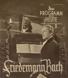 Friedemann Bach is a 1941 German historical drama film directed by Traugott Müller and starring Gustaf Gründgens, Leny Marenbach and Johannes Riemann. The film depicts the life of Johann Sebastian Bach's son Wilhelm Friedemann Bach. It is based on Albert Emil Brachvogel's novel Friedemann Bach. Wilhelm Friedemann Bach is shown as a gifted son trying to escape his father's shadow.