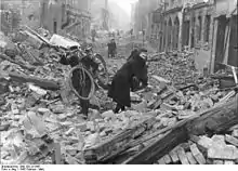 On 3 February 1945 the 47th and 7th school and the Library No. I were both heavily damaged in the US air raid on that fore-noon,[13] most of the Luisenstadt neighbourhood had been bombed to ashes. The school, like many public buildings hosting ARP units, was saved from burning out completely, so that the Library No. I could at least rescue much of its holdings and other equipment. It moved into another location on Tempelhofer Ufer 15, in the Tempelhofer Vorstadt neighbourhood.[34]