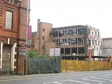 The western tip of the island was crossed by the Great Central Main Line, which linked Leicester with Sheffield and Nottingham in the north, and Marylebone station in the south. The line was closed as part of the Beeching Axe reorganisation in the 1960s. Some railway arches remain and are now used by a number of small businesses. The arches are constructed from the distinctive Staffordshire Blue bricks, and were part of the immense north viaduct which brought the line into central Leicester.[3][4] Before the construction of St Margaret's Way, Slater Street provided easy access to St Margaret's Pastures and thence to Abbey Park.