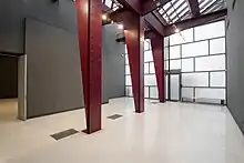 Soon a series of reforms began to be carried out in the old structure of the building, the original work of the brothers Agustín and Manuel Ortíz de Villajos (1876-1877). The eclectic-style building, which had been conceived in the 19th century as a church, hostelry, and infirmary, underwent extensive remodeling to adapt its spaces to the new aims of the Foundation. The architects Solans - Briales del Amo created a modern cultural center, integrating into the old building new spaces for an auditorium, exhibition halls, library, technical services, and offices.