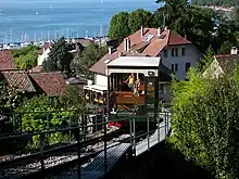 The Funiculaire de Thonon-les-Bains, or Thonon-les-Bains Funicular, is a funicular railway in the spa town of Thonon-les-Bains, in the French département of Haute-Savoie. The line links the Belvedere, in the city centre, to the port of Rives, on the shores of Lake Geneva.[1][2]