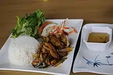 In Vietnamese cuisine, Gà nướng sả is grilled chicken with lemon grass (sả). Common ingredients include garlic, onion, honey, sugar or pepper.[1] Grilled beef and other meats are also popular variations.