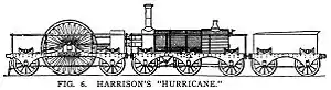 Hurricane was the second of a pair of steam locomotives (the other being Thunderer) built for the Great Western Railway (GWR) by R. & W. Hawthorn & Co. whose design was very different from other locomotives. In order to meet Isambard Kingdom Brunel's strict specifications, a 2-2-2 frame carried the 'engine', while the boiler was on a separate six-wheeled frame.
