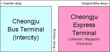 Gagyeong Terminal(Korean: 가경터미널) is a bus terminal located in Gagyeong-dong, Heungdeok-gu, Cheongju-si, Chungcheongbuk-do, Republic of Korea. It consists of two terminals: