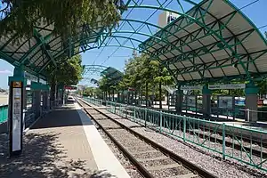 Galatyn Park station is a DART Light Rail station in Richardson, Texas. The station serves the Red Line and, during peak periods, the Orange Line.[1] It is located on the eastern side of North Central Expressway (US-75) and is named for a nearby road, Galatyn Parkway.