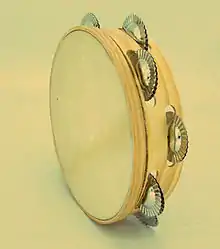 The Galician tambourine[1] or Pandeireta Galega is a percussion instrument consisting of a wooden hoop that incorporates several metal rattles (ferreñas), whose hollow central part is covered by a skin stretched (usually rabbit or pig). The metal rattles that wave between them make the sound as well as the beating on the leather.