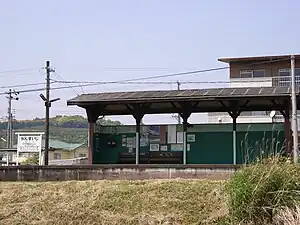 The station has one side platform serving a single bi-directional track with a small station building. The station is unattended. The station building and platform are protected as Registered Tangible Cultural Properties of Japan since 2011.[1]