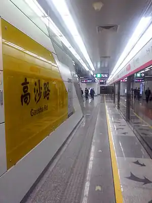 Gaosha Road (Chinese: 高沙路) is a station on Line 1 of the Hangzhou Metro in China.[1][2] It was opened in November 2012, together with the rest of the stations on Line 1. It is located in the Qiantang District of Hangzhou.