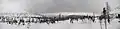 Owing the area's elevation and proximity to the Saint Lawrence River, the climate of the park is very different from the lowlands of Quebec. Mount Logan, at an altitude of 1,150 m (3,770 ft), has an average annual temperature of −3.6 °C (25.5 °F). This low temperature, combined with the lower pressure at high altitude, causes moisture to condense and fall as rain or snow; in fact, these mountains are the wettest region of Quebec.[3]