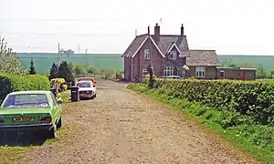 ![]() The site of the station, looking south towards the level crossing, in 1995 | |