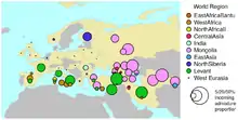 - 1 2 Ralph, P; Coop, G (2013). "The geography of recent genetic ancestry across Europe". PLOS Biol. 11 (5): e1001555. doi:10.1371/journal.pbio.1001555. PMC 3646727. PMID 23667324.