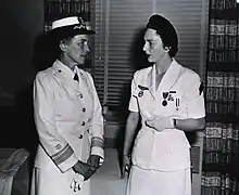 As early as May 19, when Galard was still in captivity, U.S. Congresswoman Frances P. Bolton urged United States Secretary of State John Foster Dulles to invite the French nurse to the United States.[15] When she arrived in New York City in July, she was met at the plane by Mayor Robert Wagner and a large crowd. Congresswoman Bolton introduced her as a "symbol of heroic femininity in the free world" and a Ticker Tape parade down Broadway in her honor was attended by perhaps 250,000 spectators. She was then given a reception at city hall.[15]