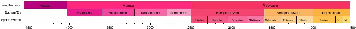 Informally, the time before the Cambrian is often referred to as the Precambrian or pre-Cambrian (Supereon).[6][note 3]