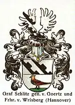Born into an old and prominent German noble family from Fulda, he was the eldest of four sons of Philipp Friedrich von Schlitz gen. von Görtz (1641-1695) by his first wife, Juliane von Minnigerode (1652-1687). From his father's second marriage to Sophia Philippine von Ilten (1669-1732), he had three more half siblings.