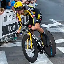 Bennett was named as the team leader for Jumbo Visma for the 2021 Giro d'Italia. He was aiming for a top 5 finish.[56] However the first week was very disappointing as he struggled in the cold and wet conditions, losing time to his rivals on stage six.[57] He commented that "I would say it's by quite a long way the biggest disappointment, not one of, the biggest disappointment."[58] In the second half of the race, Bennett found better form, with a third place on stage 12[59] and a 7th place on stage 14 which finished with the climb up Monte Zoncolan.[60] He finished in 10th position on the uphill finish on stage 17.[61] He eventually finished in 11th position in the general classification. Bennett, instead of racing in that year's Tour de France, spent July preparing for the Tokyo Olympics where he was expected to ride in the time trial and the road race. The 234-kilometre (145 mi) men's road race, which featured 4865m of elevation gain, was expected to suit his climbing style.[62] Bennett ended up finishing the road race in twenty-sixth place, 6:20 down on winner Richard Carapaz.[63] He said of the race "I'm sure New Zealand just wasted six and a half hours watching that... I just didn't have it. It's a tough day. It happens".[64]
