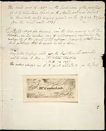 Cumberland shared an interest with Blake in printmaking. In 1784 they both experimented with new methods of printing etched texts.[2] In that year Cumberland printed an account of his "New Mode of Printing", although it does not seem to have been a practical commercial proposition.[10] In printing his own works Cumberland would come to rely on Blake's technical advice on copperplate and lithography.[11][12][13]