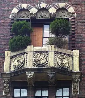 A balcony at 81 Irving Place (1930) at the corner of East 19th Street in Gramercy Park neighborhood of Manhattan