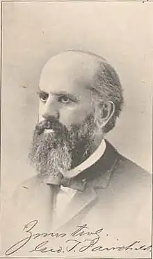 While at Kansas State, Fairchild stepped into an ongoing debate about the role of land grant colleges. While some felt that the college should be limited to agricultural and mechanical arts, Fairchild reimplemented a classical liberal arts education at Kansas State. He is credited with saying, "Our college exists not so much to make men farmers as to make farmers men."[1] Fairchild restored classics courses and brought in prominent professors. He also bolstered the number and caliber of students at Kansas State, lifting attendance at the young school from 207 to 734 students during his tenure.[2] Ernest Fox Nichols, Philip Fox, Walter T. Swingle, Charles Lester Marlatt and David Fairchild (his son) were drawn to study at the school during this era.