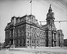 He designed numerous government and commercial buildings in Columbus, Ohio, including the 1887 Franklin County Courthouse, the Columbus City Prison, and the Schlee and Hoster breweries. He also designed Franklin County's infirmary. Most of his buildings have since been demolished.[1] The oldest extant church building in Columbus, Holy Cross, was also designed by him. [4]