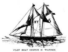 The George H. Warren was a schooner rigged two-masted pilot-boat, built in 1882 by Porter Keene at North Weymouth, Massachusetts, to replace the Edwin Forrest, No. 4, which was sold to the Pensacola, Florida pilots. She was launched on December 31, 1882, from the Porter Keene shipyard at Weymouth. John Harry Jeffery was the captain.[1]