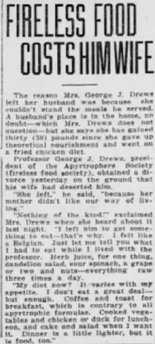 - 1 2 Apostle of Raw Food Explains Belief of Sect. Bismarck Daily Tribune. (October 9, 1913).