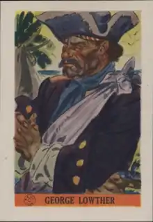 A scan of a 1936 Jolly Roger Cups Pirate card of the pirate George Lowther.