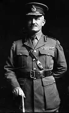 Richardson was serving on the Imperial General Staff in London as New Zealand's representative, having taken over Colonel Alfred Robin in this capacity, when the First World War broke out.[2] He helped in the formation of the Royal Naval Division and deployed to France in September 1914 as its chief of staff,[4] and then as assistant adjutant and quartermaster general with the temporary rank of lieutenant colonel.[5] With the division, he served in the unsuccessful defence of Antwerp, and managed to avoid being taken prisoner of war when the city fell to the Germans.[2]