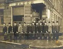 Weston's business prospered, particularly with the development of his "Real Home Made Bread," made from a combination of Manitoba No. 1 Hard Wheat and Ontario Fall wheat.[4] His bakery underwent at least four expansions. At a time when many bakers were reluctant to adopt new technology, believing it adversely affected the taste and quality of their bread,[5] Weston began introducing modern equipment to automate the baking process. "He has not spared expense getting in the latest designs of machinery to mix his dough," proclaimed one newspaper ad.[6] Eventually, he renamed his bakery on Sullivan Street the "G. Weston’s Bread Factory."