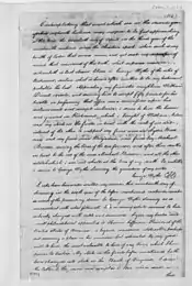 When Wythe's wife Elizabeth died on August 18, 1787, Wythe returned some slaves whom her father had bequeathed to Elizabeth to her remaining relatives. Wythe filed manumission papers for his long-time housemaid and cook Lydia Broadnax on August 20, 1787, two days after Elizabeth's death. Four years later, Lydia accompanied Wythe as he moved to Richmond, where he had previously commuted four times yearly to handle Chancery Court business.[93] In addition, a young mixed-race youth, Michael Brown, born free in 1790, lived in Wythe's household.[94] By 1797 Broadnax owned her own home, where she and Brown lived and took in boarders. Wythe had taken an interest in Brown, taught him Greek and shared his library with him.[95] On January 29, 1797, Wythe also freed Benjamin, another adult slave who continued to work as his servant in Richmond; Wythe named Benjamin a beneficiary in his 1803 will, which included money for Brown's continued education.[93]