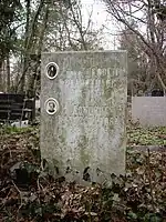 The grave of Georgi Bradistilov and his wife Dobrina Bradistilova at Sofia Central Cemetery (42°42.788′N 23°20.077′E / 42.713133°N 23.334617°E / 42.713133; 23.334617)