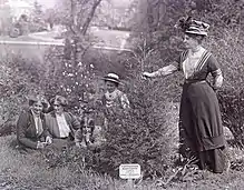 Brackenbury's imprisonment qualified her sister and herself to have a commemorative tree planted at the "Suffragette's Rest" in Somerset on 22 July 1910.[3] The "Suffragette's Rest" was the nickname for Mary Blathwayt's home at Eagle House where her parents also indulged their WSPU enthusiasm. Her parents had set land aside to plant an individual tree for each WSPU member sentenced to prison. The planting was then photographed by Mary's father. The tree's and the photographs recorded their achievements.