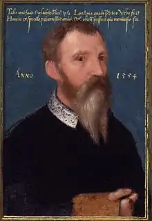 Gerlach Flicke (fl. 1545 – 1558), Latin name Gerbarus Fleccius, anglicised in the 16th century as "Garlicke",[1] was a German portrait painter who is known for his work in London as an artist of the Tudor court. Flicke was imprisoned in London and he made a portrait miniature whilst there. This painting is the earliest self-portrait in oils made in England.[2]