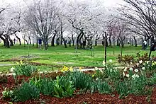 The German-American Friendship Garden in April 2014. Nearby, the cherry blossoms in bloom.